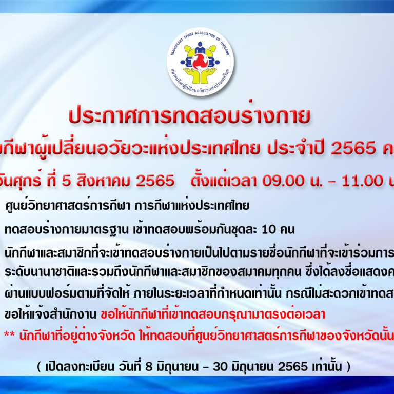สมาคมกีฬาผู้เปลี่ยนอวัยวะแห่งประเทศไทย ขอแจ้งผลการพิจาร…
